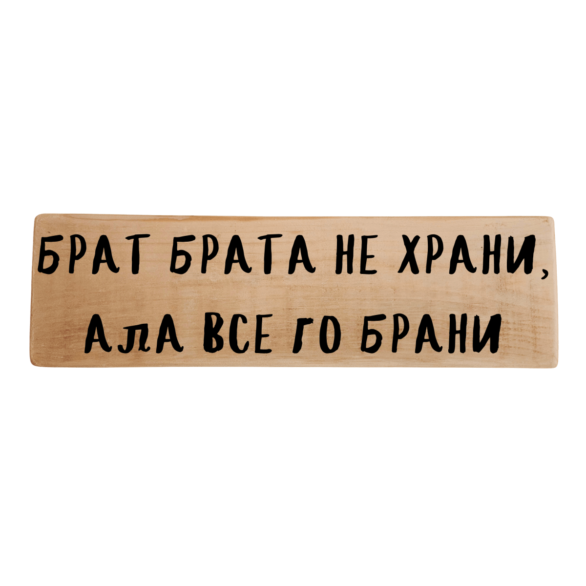 Ръчно изработена табела с надпис „Брат брата не храни, ала все го брани“ – силна народна мъдрост за истинската връзка между братя и близки хора. Подходяща е за дома, семейния кът или коридора и носи послание за подкрепа, чест и родова сила.