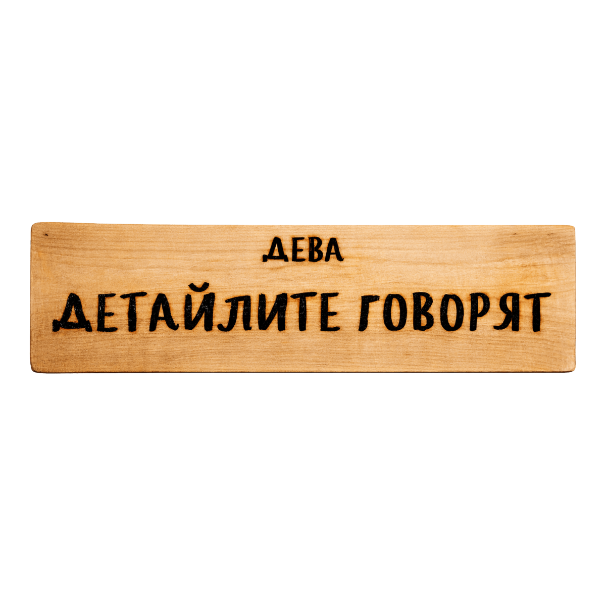 Тази дървена табела за зодия Дева с надпис „Детайлите говорят“ е намигване към наблюдателния ум и способността да се чете между редовете. Оригинален подарък и декор за хора с изострено внимание, аналитичен ум и способност да откриват смисъл в малките неща.