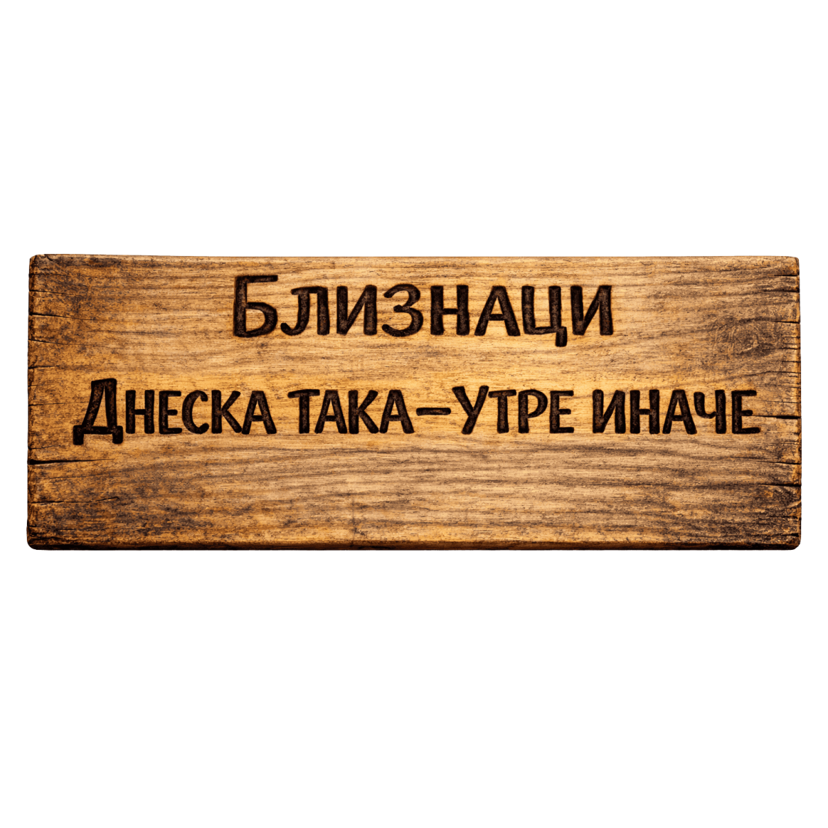 Ръчно изработена дървена табела „Днеска така – утре иначе“ – хумористичен зодиакален надпис за Близнаци, оригинален подарък и декор за хора с променливо настроение, бързи мисли и любов към разнообразието.