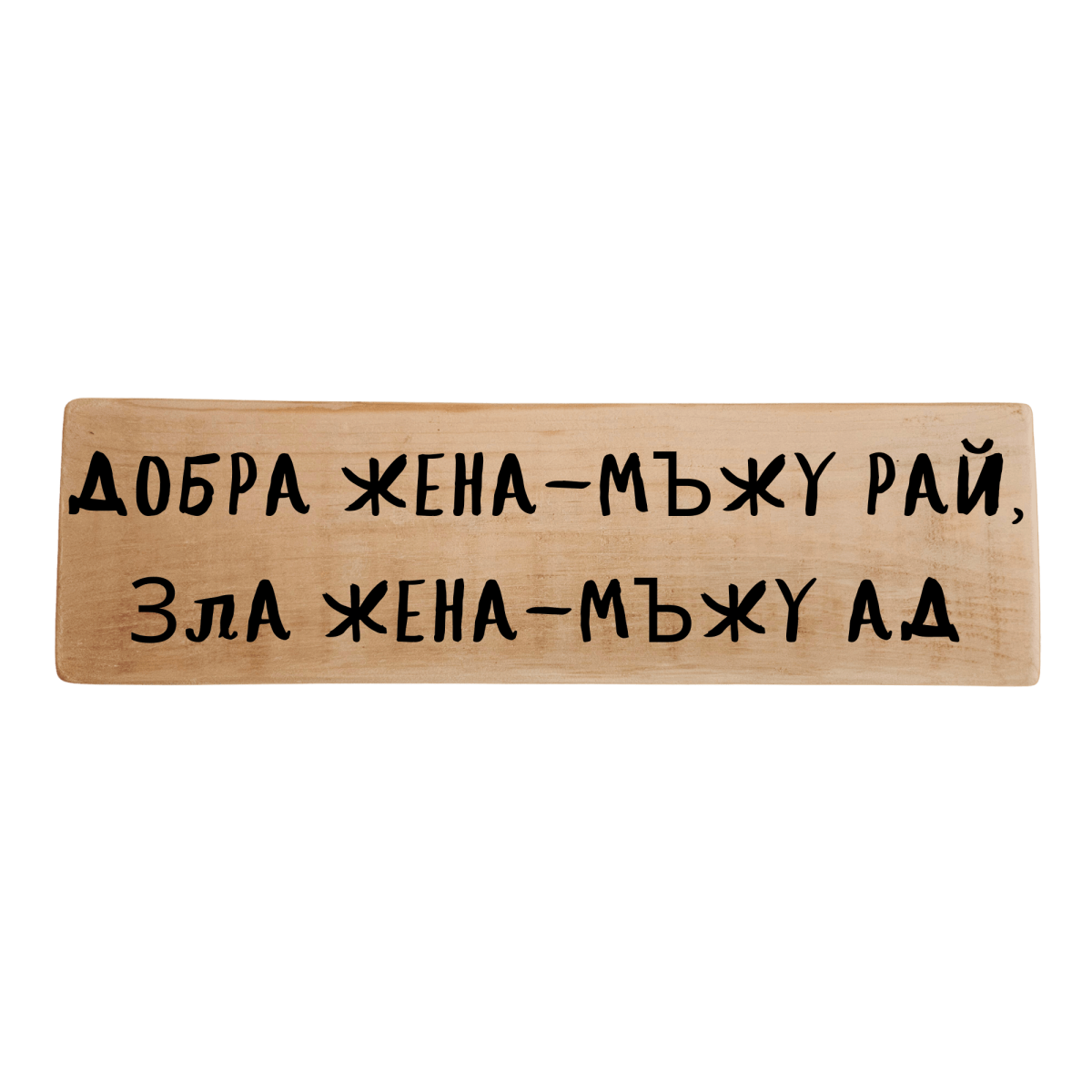 Тази ръчно изработена табела с надпис „Добра жена - мъжу рай, зла жена - мъжу ад“ е перфектен избор за дом, в който се обичат закачките и народните мъдрости. Стои чудесно като декор и е страхотен подарък за семейство, младоженци или приятели, които обичат да се смеят на истините от живота.