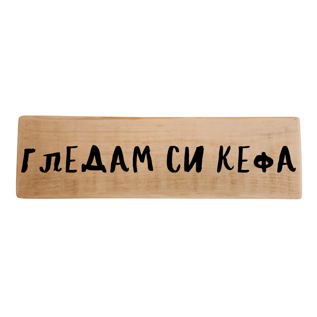 Тази ръчно изработена табела с надпис „Гледам си кефа“ е перфектен подарък за човек, който обича свободата, спокойствието и личното си време. Стои чудесно като забавен декор и винаги предизвиква усмивки, защото всички тайно искат да го правят по-често.