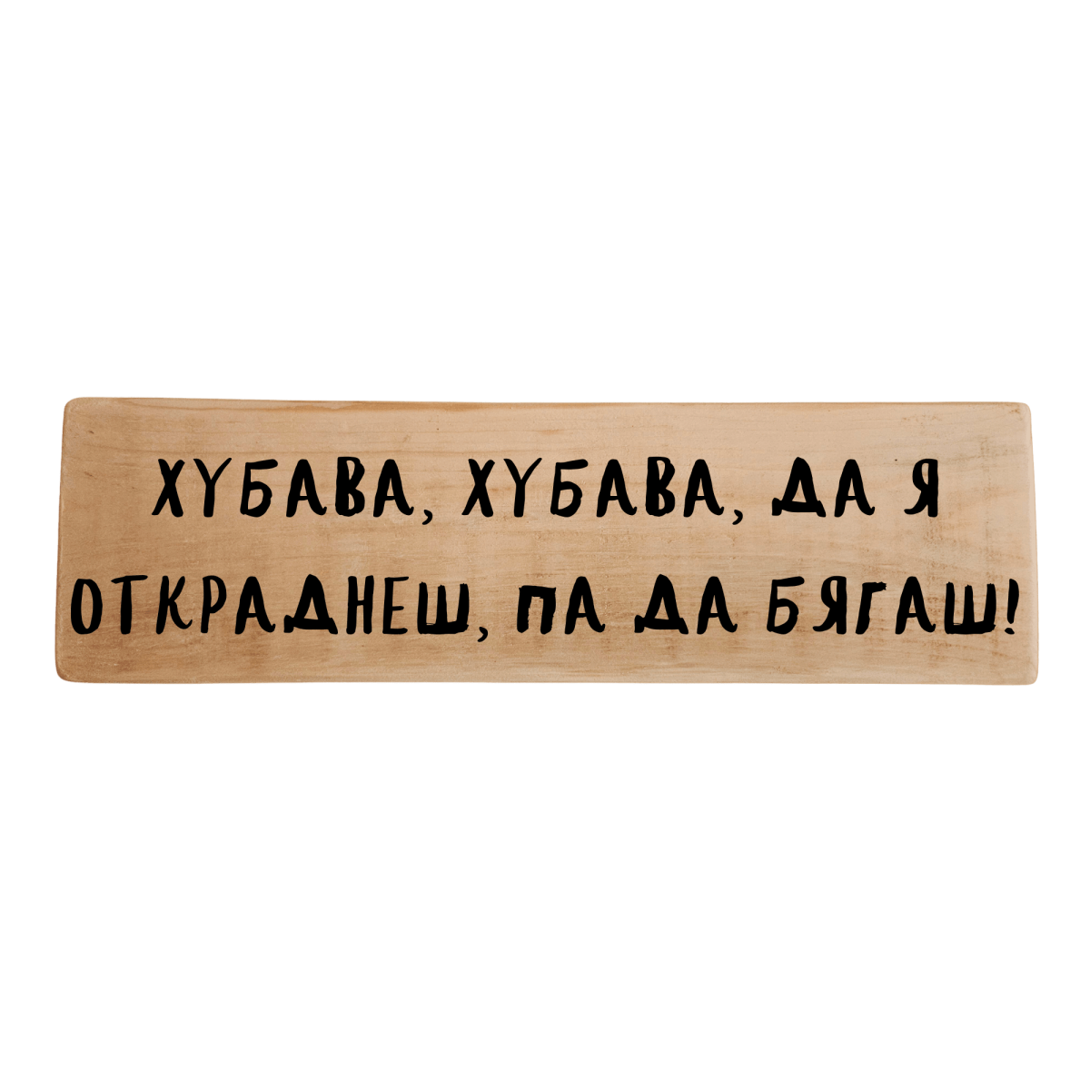Ръчно изработена табела „Хубава, хубава, да я откраднеш, па да бягаш!“ – весел, запомнящ се надпис, който превръща всяка стена в повод за смях. Перфектна е за подарък на приятелка, съпруга или колежка, която има самочувствие и чувство за хумор.