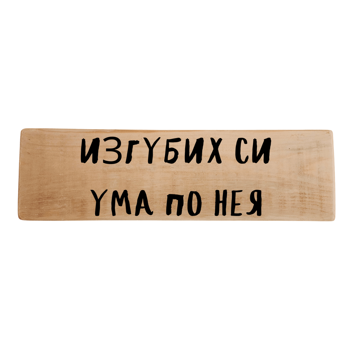 Табела „Изгубих си ума по нея“ е онова честно признание, което идва след флирта – с усмивка, нежност и малко самоирония. Тя казва всичко без излишни обяснения: любовта е тук и вече няма връщане назад. Ръчно изработена от дърво, табелата е чудесен акцент за дома и оригинален подарък за двойки, които обичат да показват чувствата си по забавен начин. В комбинация с табелата „Изгуби си ума по мен“, двете разказват пълната история – от закачливото предизвикателство до искреното признание.