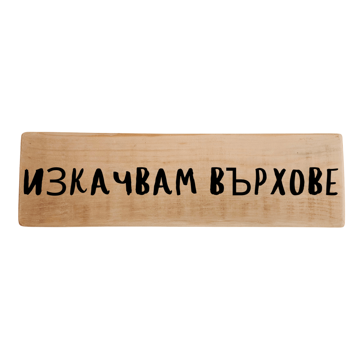 Табела „Изкачвам върхове“ е за приключенци, които не търсят лесния път, а гледат нагоре и тръгват напред. Тя носи послание за стремеж, сила и онова усещане за победа, което идва след всяко изкачване. Ръчно изработена от дърво, табелата е подходящ подарък за планинари и хора, които обичат планината. Чудесен акцент за хижи, кът за екипировка или дом, напомняйки, че всеки връх започва от първата крачка.