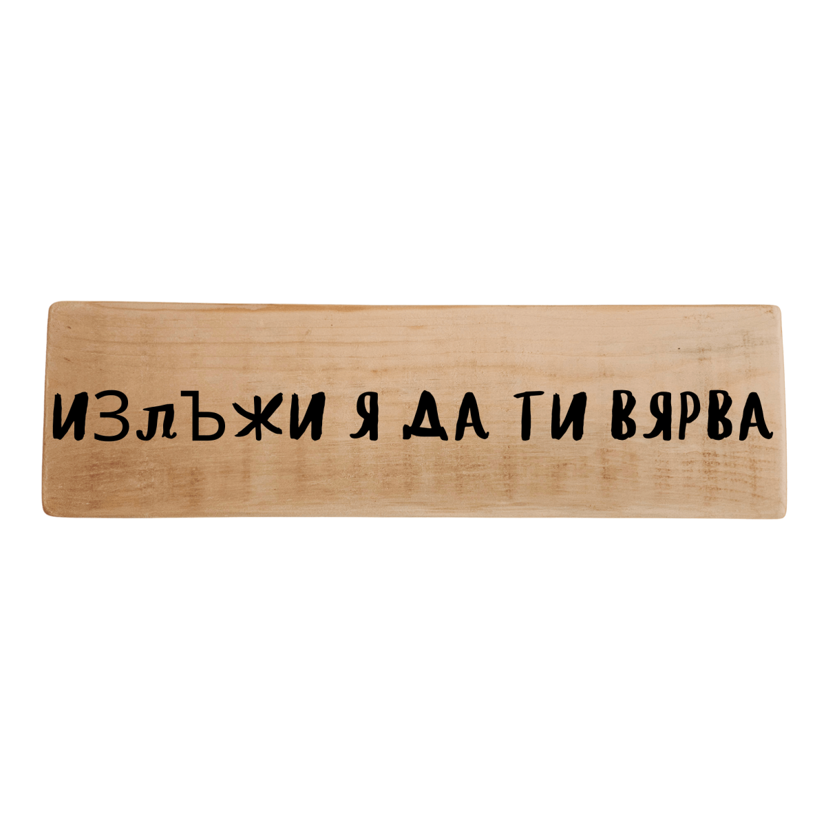 Табела „Излъжи я да ти вярва“ е игриво намигване към онези дребни „хитрини“, които всяка връзка познава – казани с усмивка и без грам зла умисъл. Тя не говори за лъжи, а за закачки, чар и онова умение да убеждаваш… с обич. Ръчно изработена от дърво, табелата е забавен акцент за дома и оригинален подарък за двойки с чувство за хумор. В комбинация с табелата „Излъжи го да ти вярва“, двете създават огледална история – равнопоставена, игрива и напълно семейна.