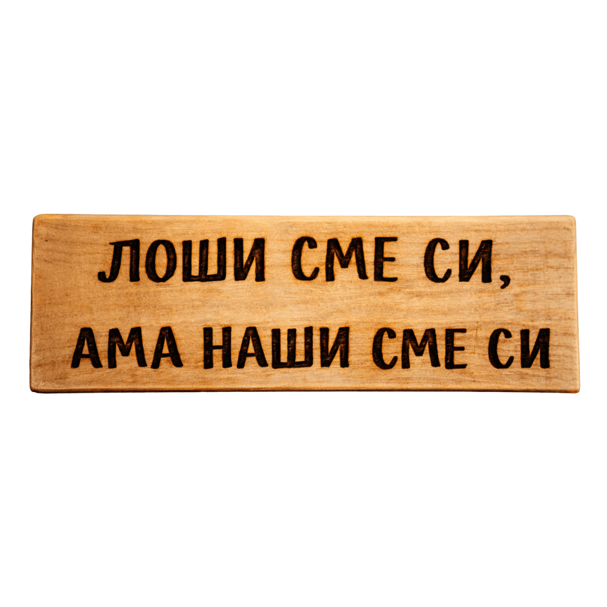 Ръчно изработена табела с надпис „Лоши сме си, ама наши сме си“ – забавна семейна истина, която казва всичко за „нашите хора“. Подходяща е за дома, кухнята или трапезарията и носи настроение с онзи хумор, който само семейството може да си позволи.