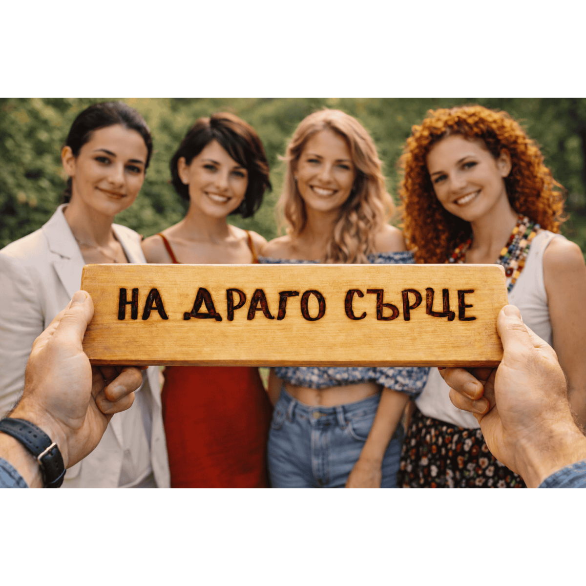 Ръчно изработена табела „На драго сърце“ – семпъл, но много изразителен надпис, който говори за щедрост и добро сърце. Идеална е за подарък или за място, където гостите винаги са добре дошли.