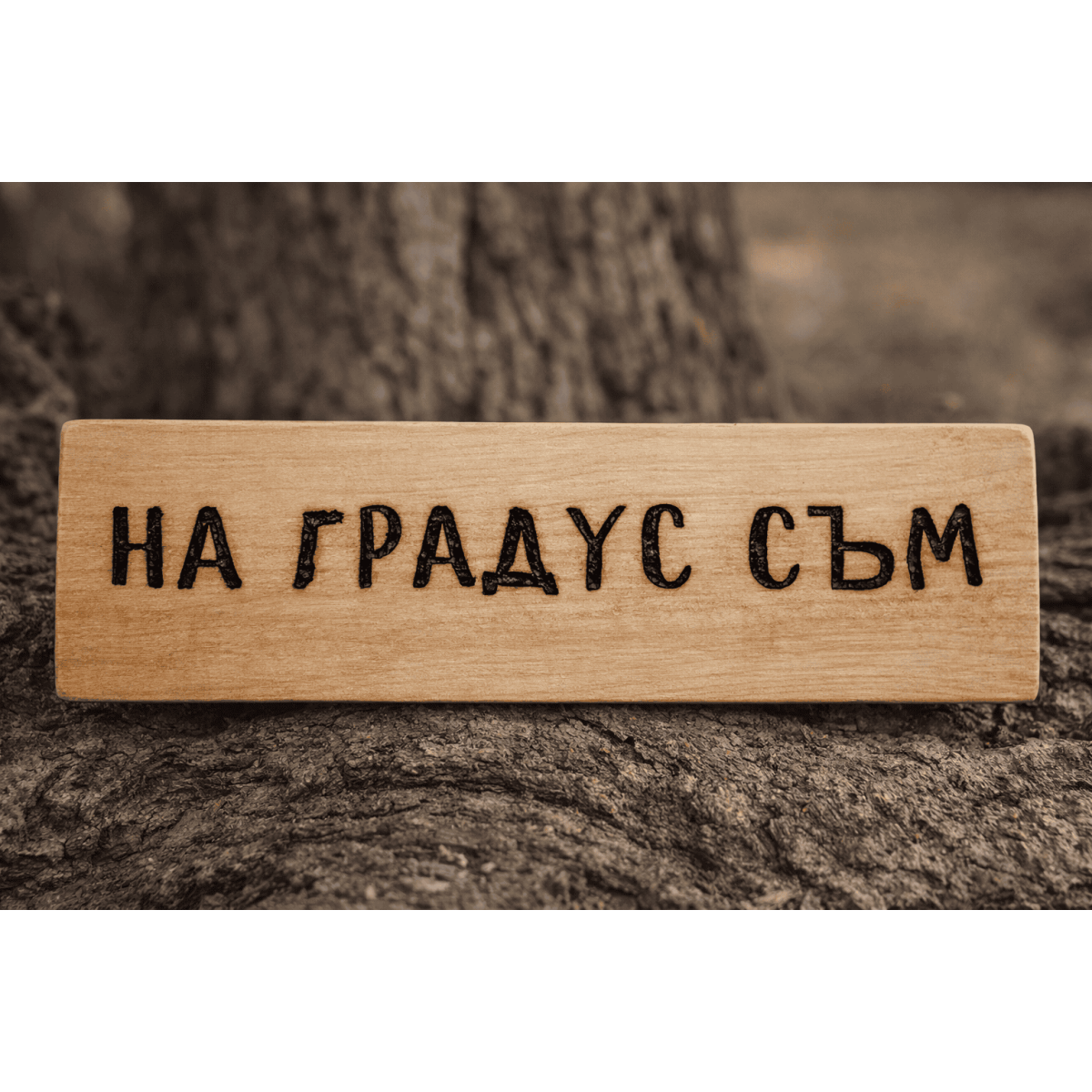 Дървена табела „На градус съм“ – малък надпис, голямо настроение. Подходяща за подарък на човек, който знае как да вдига градуса на всяка компания.