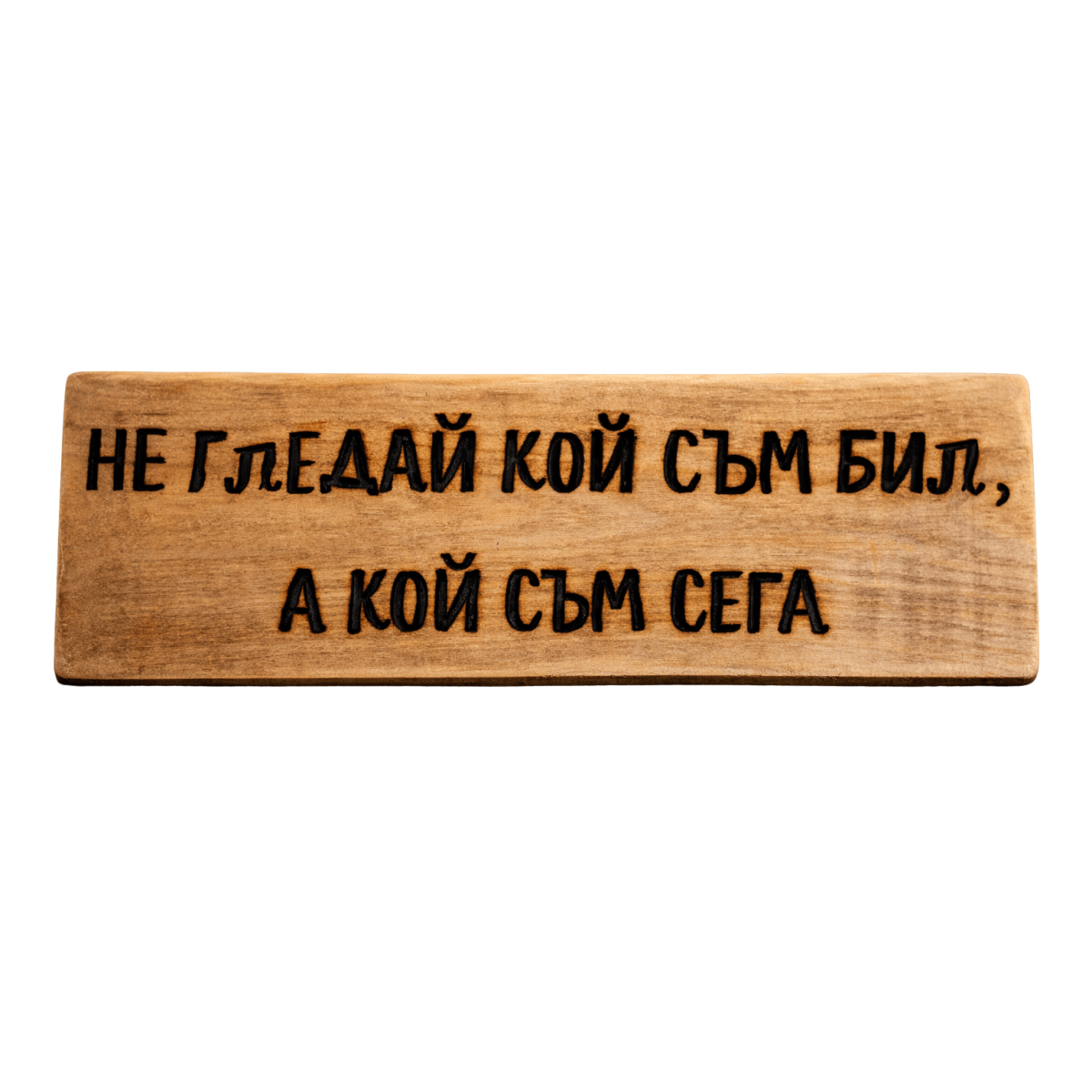 Тази табела „Не гледай кой съм бил, а кой съм сега“ говори за промяна, сила и житейски опит. Идеален подарък за мъж с история зад гърба си и ясна посока напред.