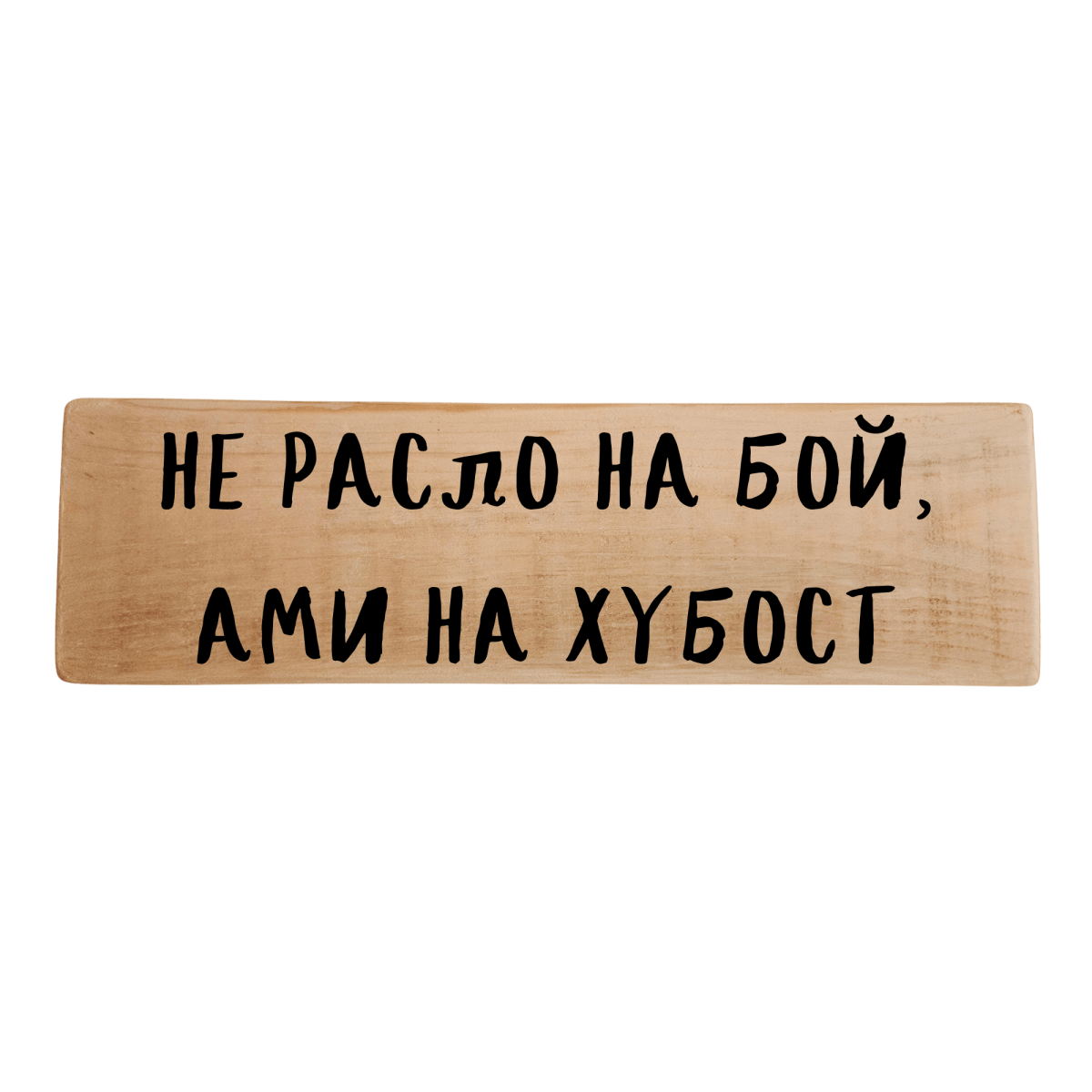 Дървена табела „Не расло на бой, ами на хубост“ – кратък надпис с много нежност. Подходящ акцент за стая, пълна с топлина, прегръдки и детски смях.