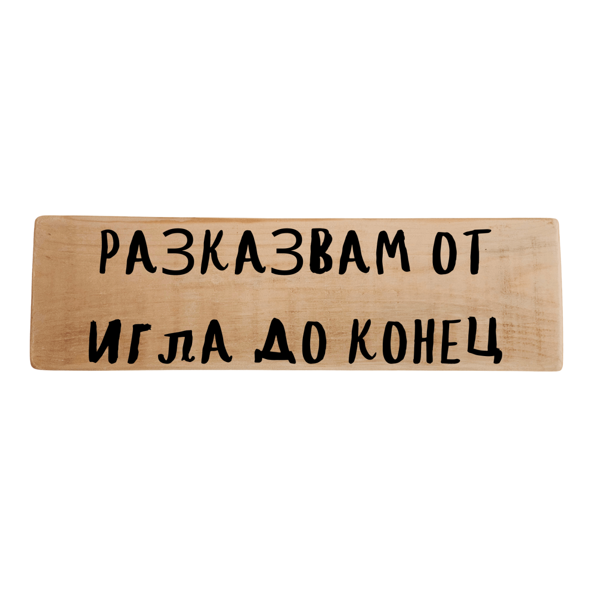 Ръчно изработена табела с надпис „Разказвам от игла до конец“ – перфектна за хора, които обичат да разказват подробно и винаги започват „от самото начало“. Подходяща е за дома, кухнята или кът за гости и носи настроение с много типичен български хумор.