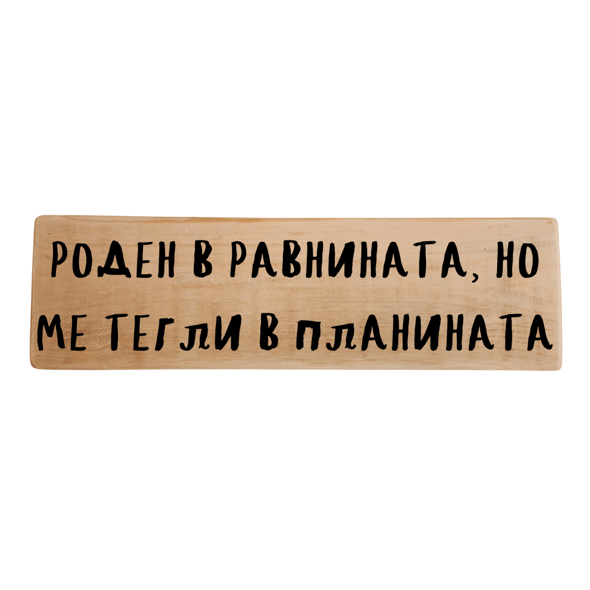 Табела „Роден в равнината, но ме тегли в планината“ е за приключенци, които усещат планината като свое истинско място, независимо откъде тръгват. Тя носи послание за вътрешния зов към висините, свободата и бягството от равния път. Ръчно изработена от дърво, табелата е перфектния подарък за планинар, както и подходящ акцент за хижа, кът за екипировка или дом, напомняйки, че планината не е просто място, а призвание.