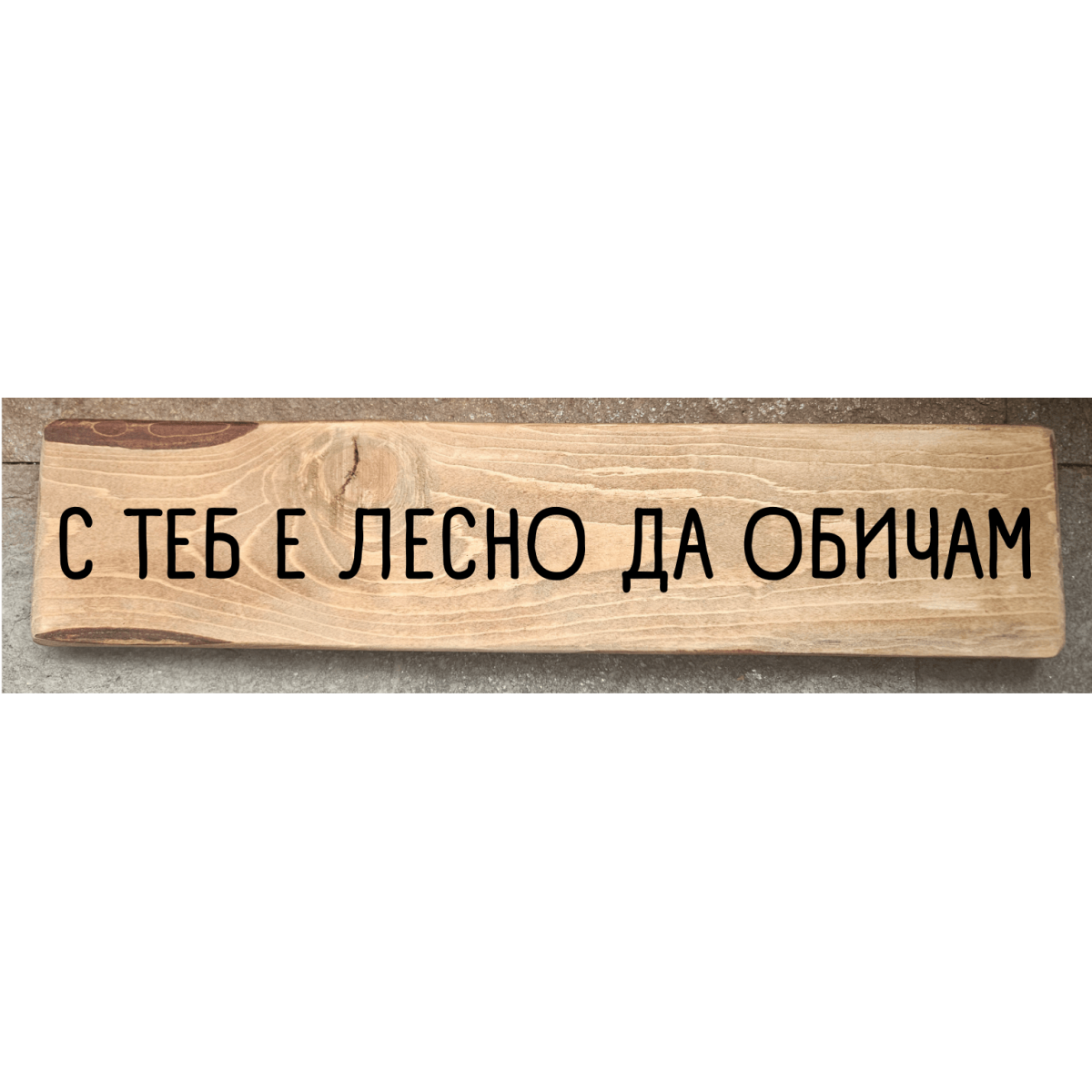 Ръчно изработена дървена табела с надпис „С теб е лесно да обичам“ – романтично мото, което изразява спокойствието, разбирателството и естествената близост между двама души. Оригинален подарък за Свети Валентин, изразяващ нежност, разбирателство и любов, която се усеща естествено и дълбоко.