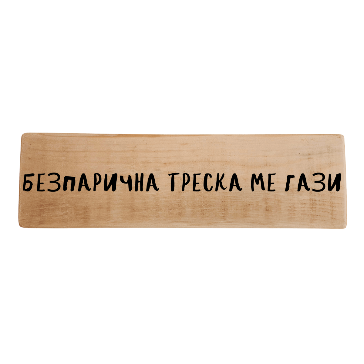 Тази ръчно изработена табела с надпис „Безпарична треска ме гази“ е перфектен подарък за приятел или колега, който все е „на финалната права“ до заплатата. Стои супер като декор и винаги става тема за разговор, защото всички сме били в това положение.