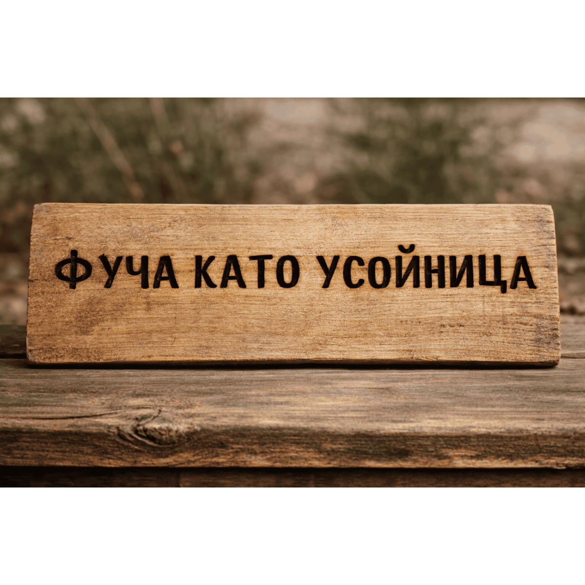 Ръчно изработена табела с надпис „Фуча като усойница“ – идеална за жена с характер, която не си мълчи. Забавен декор за дома, кухнята или работното място, който веднага събира погледи и усмивки. Подходяща е и като подарък с много настроение.