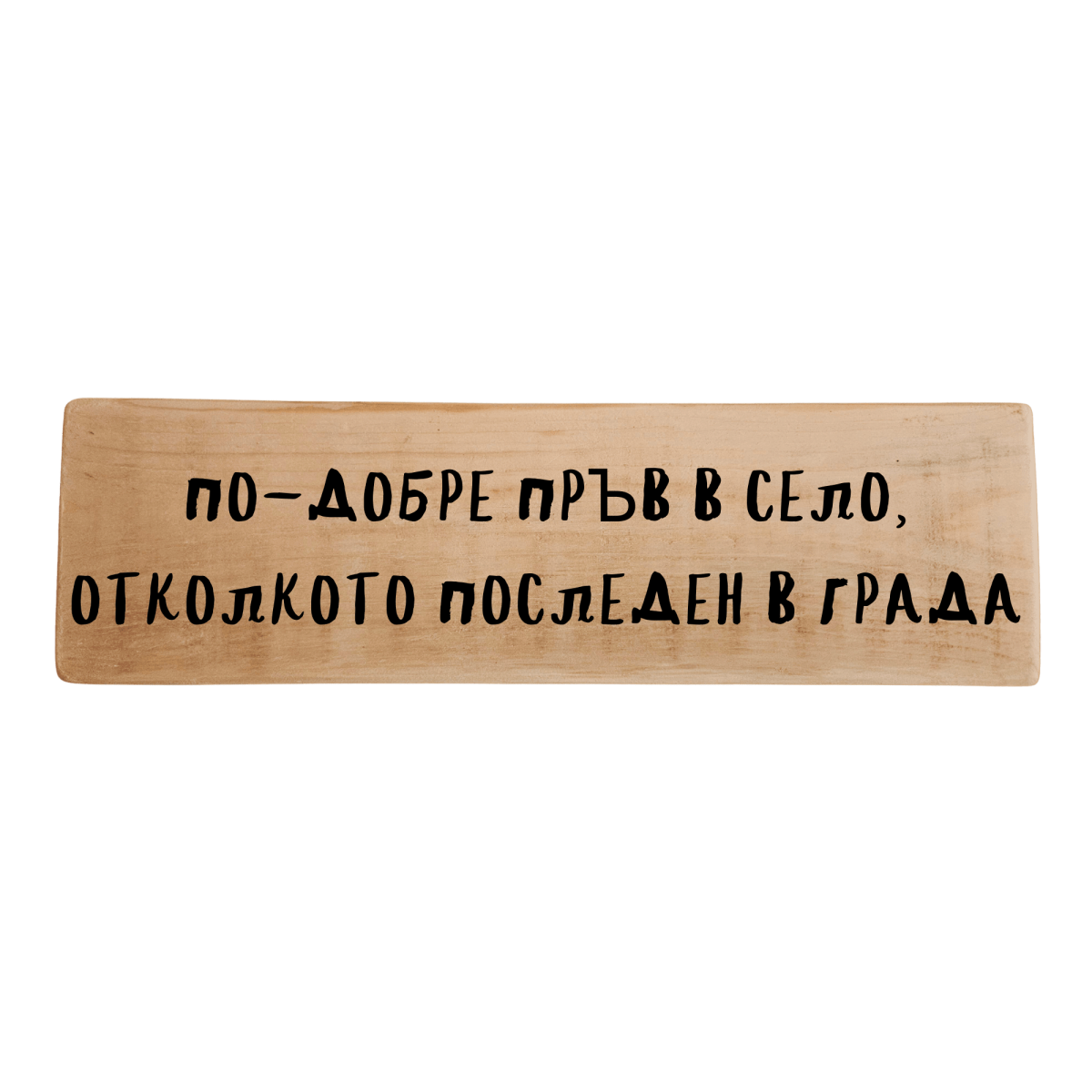 Тази ръчно изработена табела с надпис „По-добре пръв в село, отколкото последен в града“ е перфектният декор за хора, които обичат селския живот и ценят простите, истински неща. Стои чудесно на веранда, в механа кът или в селска къща и винаги предизвиква усмивки.