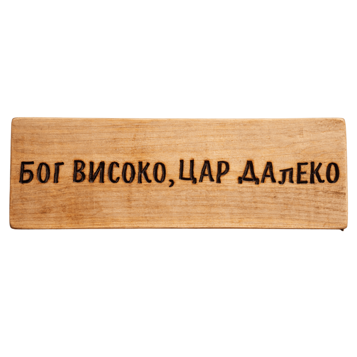 Табела „Бог високо – цар далеко“ носи духа на народната истина и свободолюбието на българина. Кратко и ясно послание, което напомня, че човек най-често разчита на себе си, на честта си и на хората до него. Ръчно изработена от дърво, табелата е отличен акцент за механа, кръчма или дом с традиционен български характер. Тя добавя мъдрост, самобитност и автентичен народен дух във всяко пространство.