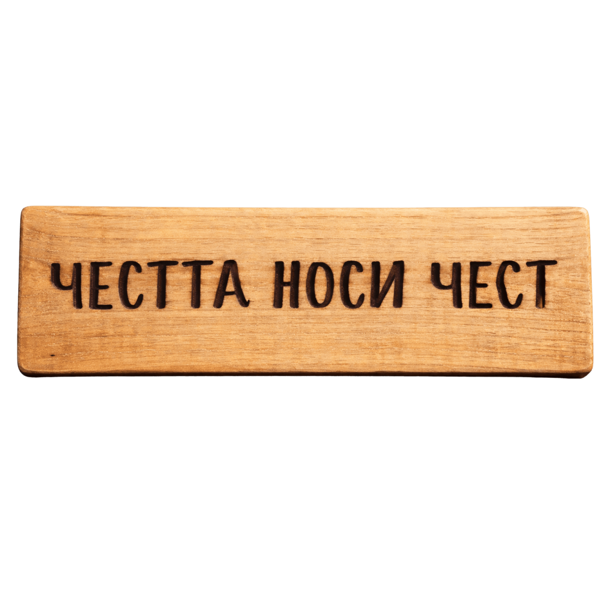 Табела „Честта носи чест“ е ясно и категорично послание за морала, достойнството и уважението между хората. Кратка фраза с дълбок смисъл, която напомня, че честта винаги се връща – към този, който я носи. Ръчно изработена от дърво, табелата е подходящ акцент за механа, кръчма или дом с български дух. Тя придава тежест, характер и уважение към непреходните ценности.