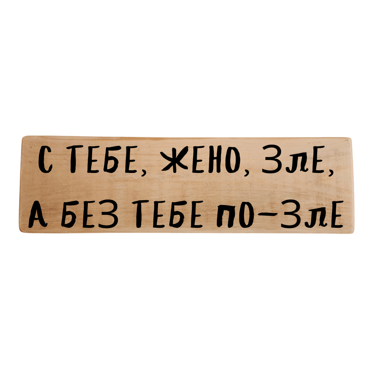 Тази ръчно изработена табела с надпис „С тебе, жено, зле, а без тебе по-зле“ е идеален подарък за двойка или семейство, което обича да се шегува със себе си. Стои чудесно като декор у дома и винаги става повод за смях и намигване, особено когато има гости.