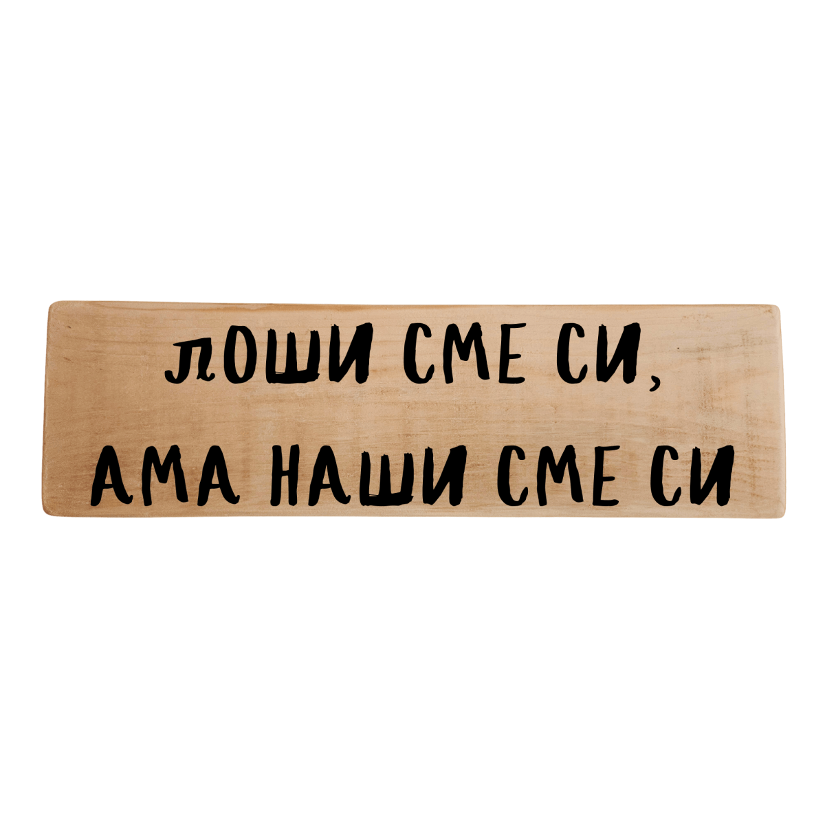 Ръчно изработена табела с надпис „Лоши сме си, ама наши сме си“ – забавна семейна истина, която казва всичко за „нашите хора“. Подходяща е за дома, кухнята или трапезарията и носи настроение с онзи хумор, който само семейството може да си позволи.