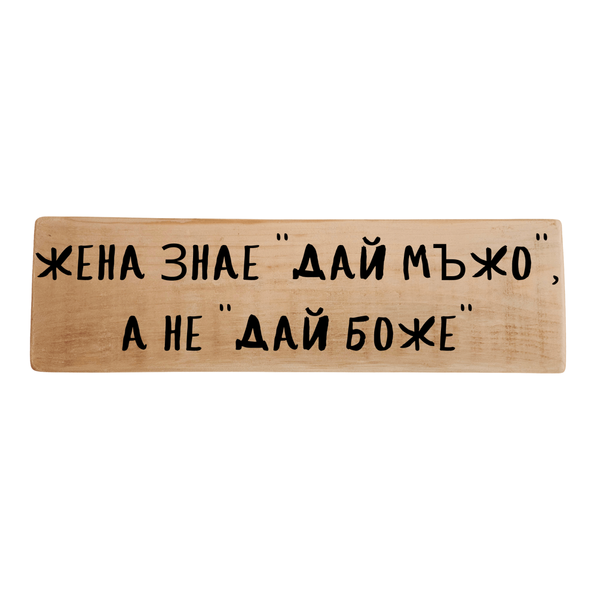 Тази ръчно изработена табела с надпис „Жена знае "Дай мъжо", а не "Дай Боже"“ е създадена за дами, които не чакат чудеса… а си ги искат директно. Стои супер в дома и веднага става тема за разговор. Подарък с гарантирани усмивки!