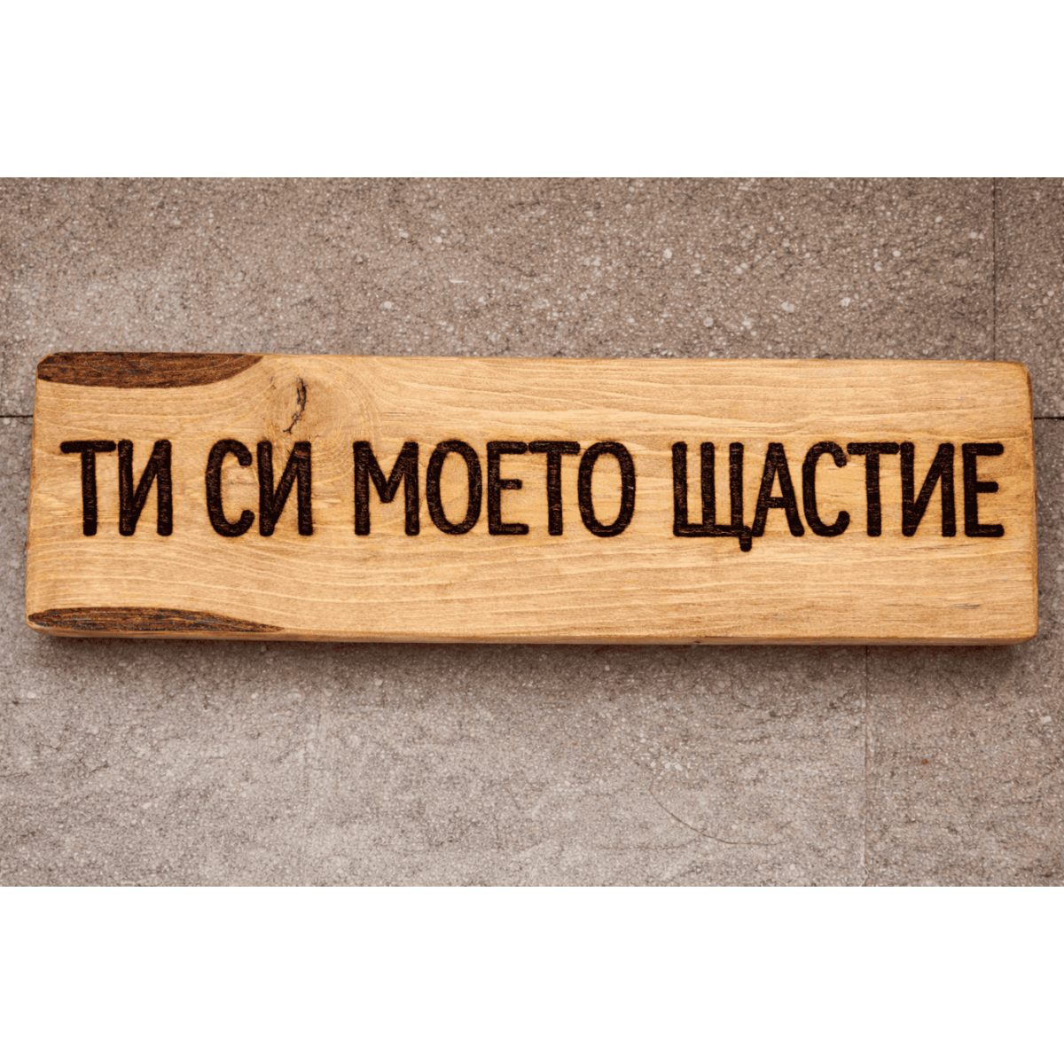Тази дървена табела с надпис „Ти си моето щастие“ е романтичен подарък за Свети Валентин, символ на любов, която носи радост, уют и смисъл. Оригинален подарък за Свети Валентин, изразяващ любов, близост и чувството, че щастието има лице и име.