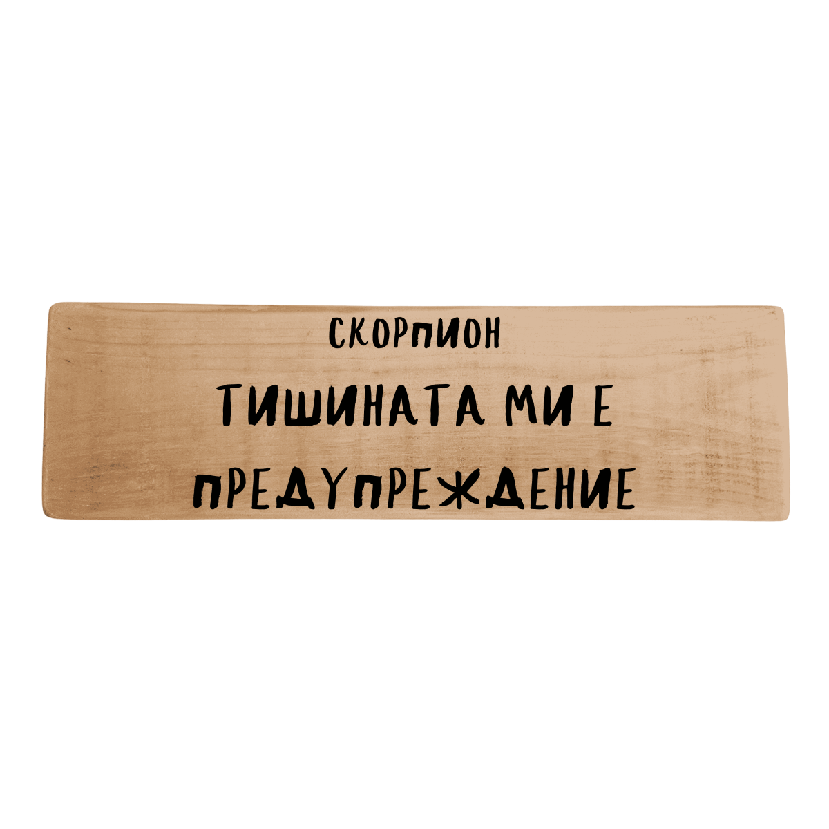 Тази дървена табела за зодия Скорпион с надпис „Тишината ми е предупреждение“ описва с хумор способността да се наблюдава, усеща и действа без излишни думи. Оригинален подарък и декорация за личности с дълбок характер, силна емоционална интензивност и способност да внушават респект без да повишават тон.