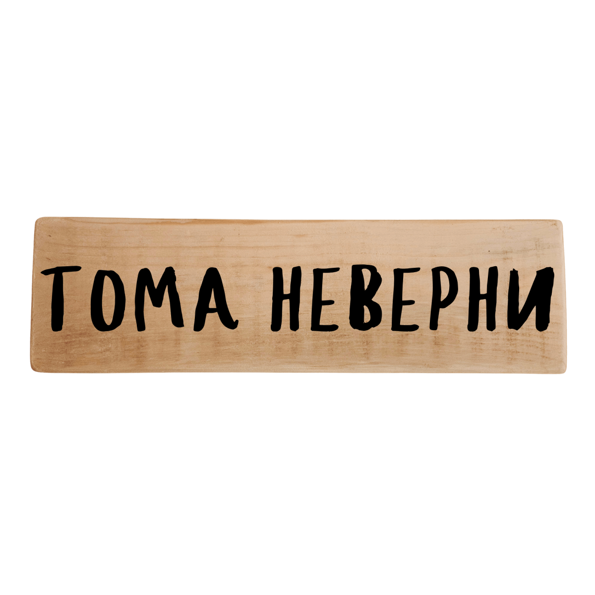 Ръчно изработена табела с надпис „Тома неверни“ – забавен и много разпознаваем лаф, идеален за имен ден с хумор и настроение. Подходяща е за дома или празничната трапеза и веднага става повод за шеги и усмивки.