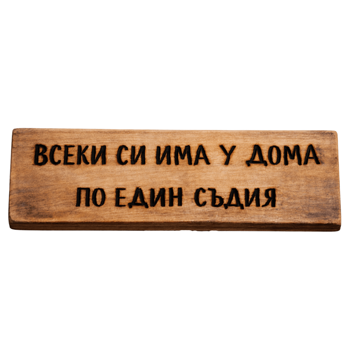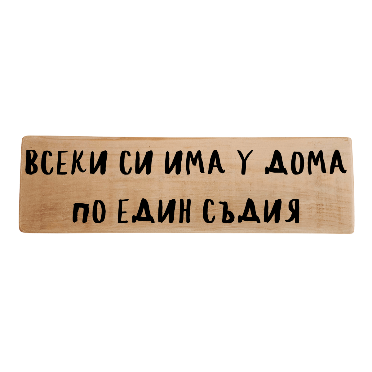 Тази ръчно изработена табела с надпис „Всеки си има у дома по един съдия“ е перфектен избор за семейства с чувство за хумор, където всеки има мнение и винаги има кой да отсъди кой е прав. Стои чудесно като декор и е страхотна идея за подарък за семейство, млад дом или ново жилище.