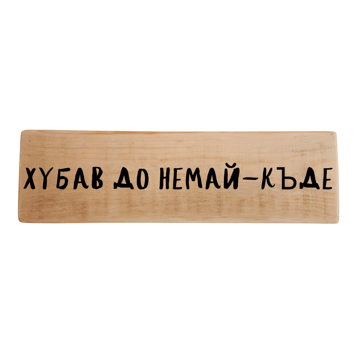 Ръчно изработена дървена табела с надпис „Хубав до немай-къде“ – весел комплимент за дете, което събира погледите още от вратата.