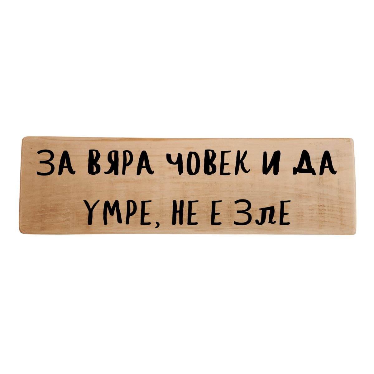 Тази ръчно изработена табела с надпис „За Вяра човек и да умре, не е зле“ е прекрасен избор за имен ден, защото съчетава мъдрост и уважение към името. Стои красиво като декор у дома и напомня за силата на вярата и стойността на доброто сърце.